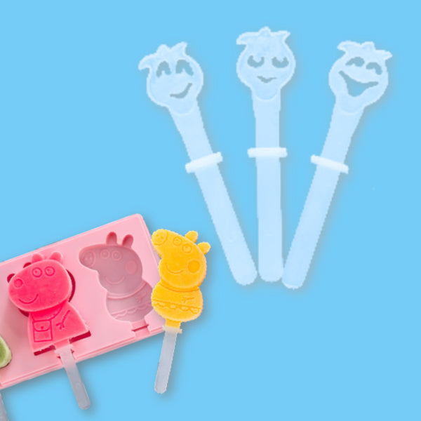 3 tartalék pálcika a jégkrémformákhoz. Így több jégkrémet készíthetsz, és a formán kívül a fagyasztóban is tárolhatod őket, például zacskóban vagy dobozban.